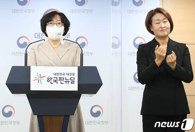 (서울=뉴스1) 송원영 기자 = 윤순진 2050 탄소중립위원회 민간위원장이 18일 오후 서울 종로구 정부서울청사에서 2030 국가 온실가스감축목표(NDC) 관련 탄소중립위 전체회의 브리핑을 하고 있다. 이날 발표된 2050 탄소중립 시나리오는 전기·열 생산에 소요되는 탄소배출을 최소화하기 위해 석탄발전을 중단해야 한다는 내용을 담고 있다. 2030년 국가 온실가스 감축목표(NDC)는 2018년 온실가스 총배출량 대비 40% 감축으로, 2050 탄소중립위원회는 기존 26.3% 감축에서 대폭 상향하는 방향으로 심의·의결하여 정부에 제안했다. 2021.10.18/뉴스1
