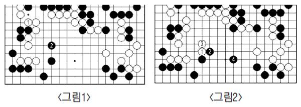 백84를 두고 86에 붙였다. 흑이 조금 앞서 있는 이때 백은 급하다. 한 번 더 벌어지면 다시 따라갈 수 없는 형세로 몰릴 수 있으니. <그림1> 백1로 받아둘 틈이 없다. 흑2보다 좋은 곳이 어디 있나. <그림2> 백3 역시 비슷해 앉아서 지는 꼴이다. 이판사판, 백88에 끊었다.