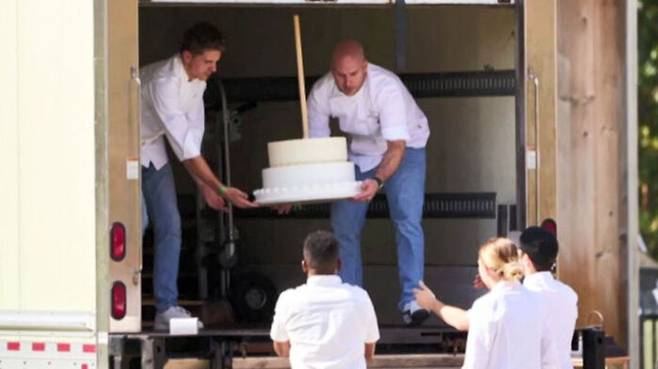 제니퍼는 베라 왕의 맞춤 드레스를 입었고 프랑스 출신 제빵사들이 만든 웨딩케이크에, 또 하객들에게는 최고급 요리가 제공되었습니다.