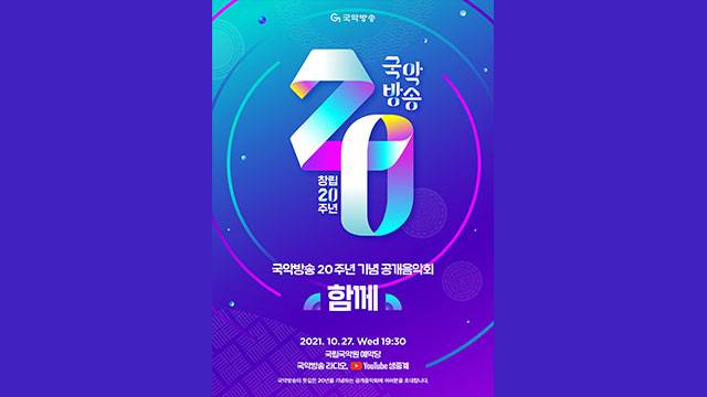 국악방송이 창립 20주년을 맞아 공개음악회 <함께>를 오는 27일(수) 저녁 7시 30분 국립국악원 예악당에서 개최합니다.