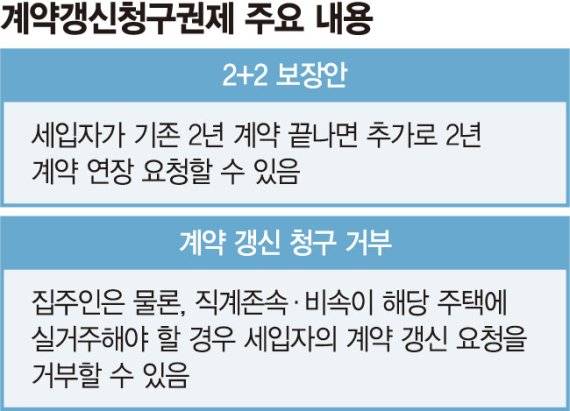 정부가 작년 7월 도입한 임대차2법 중 하나인 계약갱신청구권제는 기존 세입자가 2년 계약 이후 2년을 더 연장할 수 있도록 하는 것을 골자로 한다. 하지만 세입자의 계약 갱신 청구를 거부할 수 있는 예외 조항을 집주인들이 악용하는 게 부지기수다.