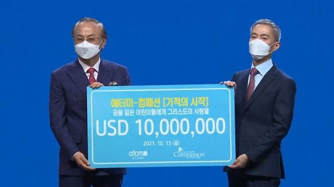 유통 기업 애터미가 국제 어린이 양육 기구인 한국컴패션에 천만 달러, 우리나라 돈으로 약 120억 원을 기부했다고 밝혔습니다.