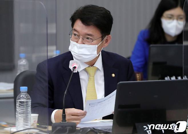 (전주=뉴스1) 유경석 기자 = 김수홍 더불어민주당 의원이 18일 전북 전주시 한국은행 전북본부에서 열린 2021년도 기획재정위원회의 한국은행 전북본부, 대전·충남본부, 충북본부, 대전지방국세청 국정감사에서 질의를 하고 있다. 2021.10.18/뉴스1