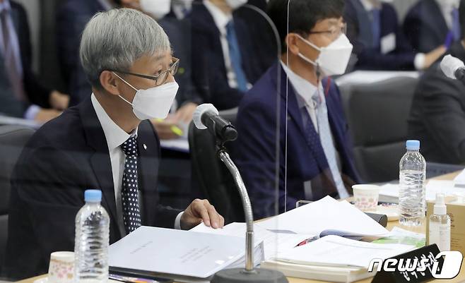 (전주=뉴스1) 유경석 기자 = 한경수 한국은행 전북본부장이 18일 전북 전주시 한국은행 전북본부에서 열린 2021년도 기획재정위원회의 한국은행 전북본부, 대전·충남본부, 충북본부, 대전지방국세청 국정감사에서 질의에 답변을 하고 있다. 2021.10.18/뉴스1