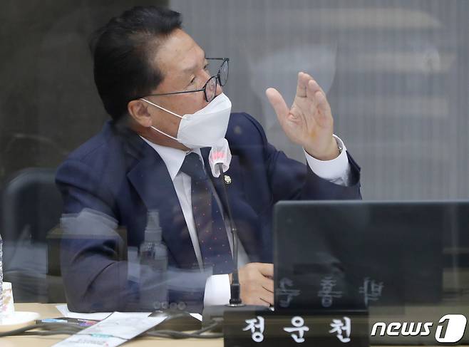 (전주=뉴스1) 유경석 기자 = 정운천 국민의힘 의원이 18일 전북 전주시 한국은행 전북본부에서 열린 2021년도 기획재정위원회의 한국은행 전북본부, 대전·충남본부, 충북본부, 대전지방국세청 국정감사에서 질의를 하고 있다. 2021.10.18/뉴스1
