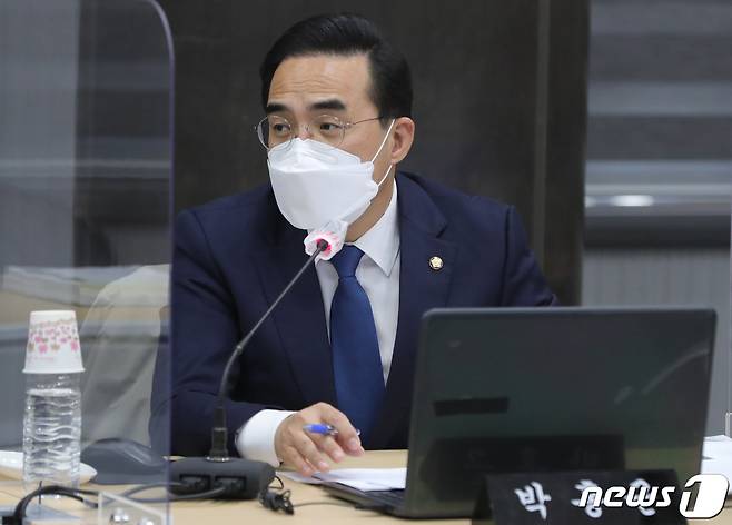 (전주=뉴스1) 유경석 기자 = 박홍근 더불어민주당 의원이 18일 전북 전주시 한국은행 전북본부에서 열린 2021년도 기획재정위원회의 한국은행 전북본부, 대전·충남본부, 충북본부, 대전지방국세청 국정감사에서 질의를 하고 있다. 2021.10.18/뉴스1
