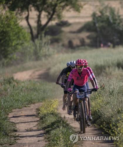 epa09529835 Team EF Education-Nippo rider Lachlan Morton (front) of Australia in action during Stage 1 of the 2021 Absa Cape Epic mountain bike race over 98km in and around the town of Ceres, South Africa, 18 October 2021. This years event sees 600 riders tackle 620km over eight days of riding and 15,350m of vertical ascent. The race includes UCI pro riders and amateurs in what is seen by many as the premier MTB stage race in the world. EPA/KIM LUDBROOK