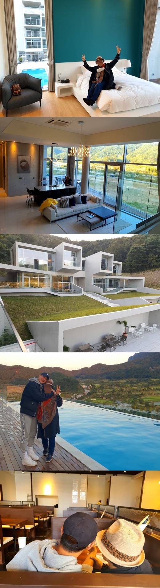 올라온 사진 속에는 정읍에 위치한 풀빌라 리조트를 방문한 심진화 김원효 부부의 모습이 담겼다. 심진화의 시어머니이자 김원효의 어머니는 행복한 표정으로 포즈를 취하고 있다.