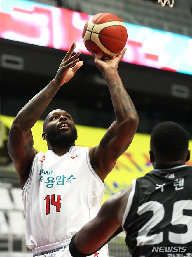 [수원=뉴시스] 정병혁 기자 = 18일 오후 경기 수원시 서수원칠보체육관에서 열린 2021-2022 KGC인삼공사 정관장 프로농구 수원 KT 소닉붐과 고양 오리온 오리온스의 경기, 오리온 할로웨이가 슛을 하고 있다. 2021.10.18. jhope@newsis.com