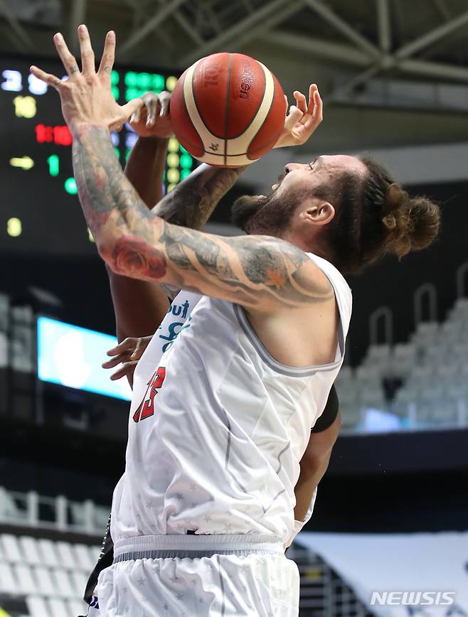 [수원=뉴시스] 정병혁 기자 = 18일 오후 경기 수원시 서수원칠보체육관에서 열린 2021-2022 KGC인삼공사 정관장 프로농구 수원 KT 소닉붐과 고양 오리온 오리온스의 경기, 오리온 라둘리차가 공을 놓치고 있다. 2021.10.18. jhope@newsis.com