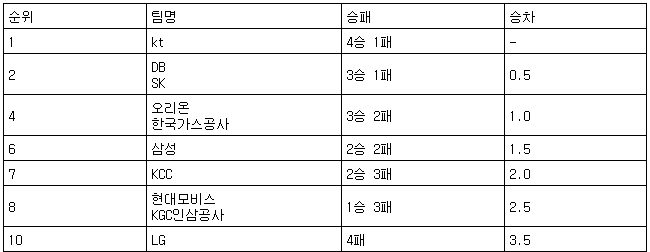 [프로농구 중간순위] 18일