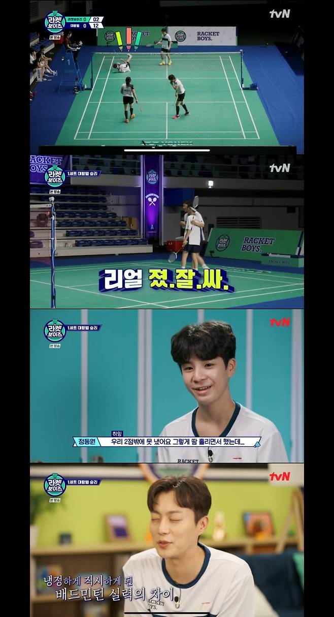 18일 방송된 tvN '라켓보이즈'는 라켓보이즈와 배드민턴 동호회 베테랑 회원들 간의 실전 대결로 그려졌다.