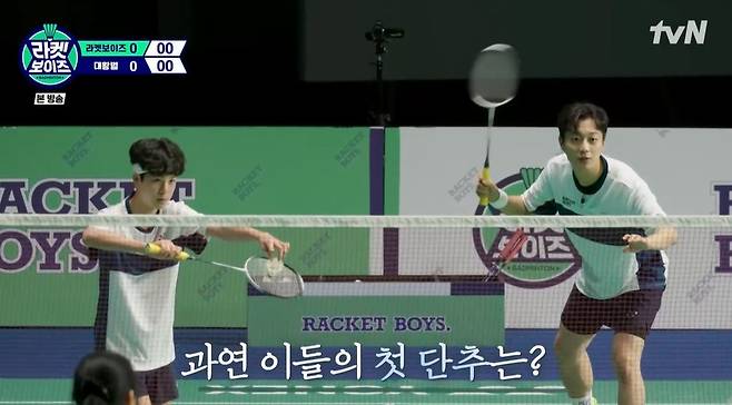 18일 방송된 tvN ‘라켓보이즈’에선 정동원 윤두준 페어의 첫 공식 경기가 펼쳐졌다.