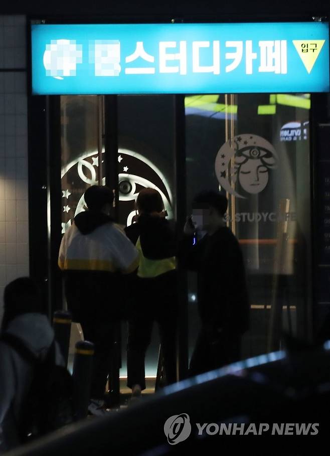 수능을 한 달 앞둔 18일 밤 10시께 강남 학원가에서 수험생들이 스터디카페로 들어가고 있다.