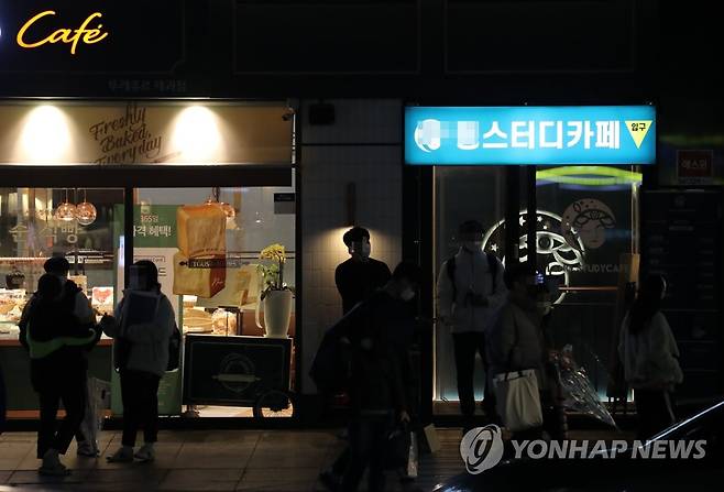(서울=연합뉴스) 한상균 기자 = 수능을 한 달 앞둔 18일 밤 강남 학원가에서 수업을 마친 학생들이 걸어가고 있다. 뒤로 스터디카페가 보인다.