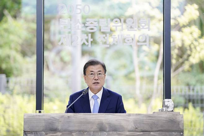 어제 문재인 대통령이 참석한 가운데 열린 탄소중립위원회 제2차 전체회의에서 2030년 국가온실가스 감축목표(NDC)를 2018년 대비 40%로 상향하는 안을 공식 의결했다.