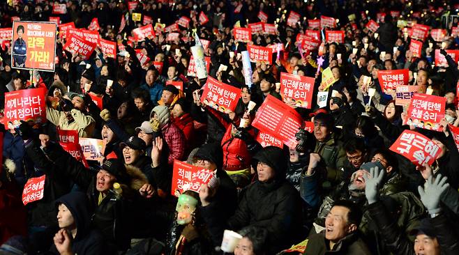 촛불항쟁은 30만을 넘더니 곧 100만, 200만명을 넘어섰다. 그야말로 폭발이었다. 그 힘에 의해 불가능할 것 같던 국회 탄핵소추안이 가결되고, 2017년 3월10일 헌법재판소는 탄핵을 결정했다. 시민들의 승리였다. 이명박·박근혜의 보수정권은 철퇴를 맞았다. 적폐청산의 요구는 드높았으며, 불공정과 불평등에 대한 시민들의 분노는 분명했다.