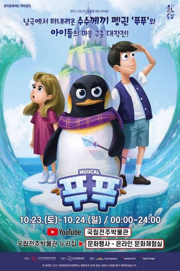 [쿠키뉴스] 박용주 기자 =국립전주박물관(관장 홍진근)은 오는 23일 코로나 19의 장기화로 지친 어린이들을 위한 어린이 뮤지컬 ‘푸푸’를 온라인으로 공연한다.