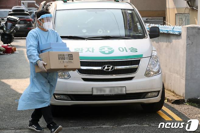 '코로나 자가치료 키트 가정에 전달'