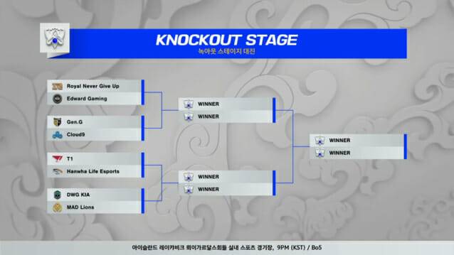 담원 기아와 T1, 젠지e스포츠는 각각 그룹 1위를 차지하고 8강 진출에 성공했으며 플레이인 스테이지를 거쳐 그룹스테이지에 올랐던 한화생명e스포츠도 조 2위로 8강 명단에 이름을 올렸다.