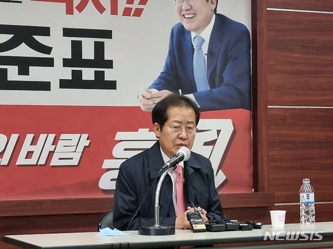 [천안=뉴시스] 이종익 기자 = 홍준표 국민의힘 대선 경선 후보가 19일 오전 충남 천안의 국민의힘 충남도당에서 열린 충남 선대위 임명장 수여식 및 당원간담회에 참석해 인사말을 하고 있다. 2021.10.19. 007news@newsis.com