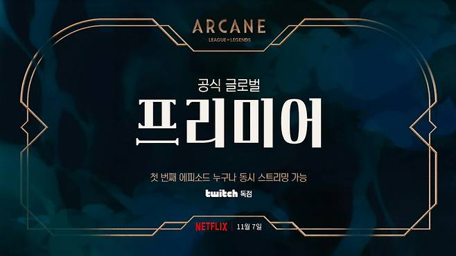 라이엇 게임즈의 리그 오브 레전드(이하 LoL) IP를 활용해 제작한 넷플릭스 애니메이션 시리즈 아케인(ARCANE)이 오는 11월 7일 넷플릭스와 트위치에서 전세계 동시 공개된다.