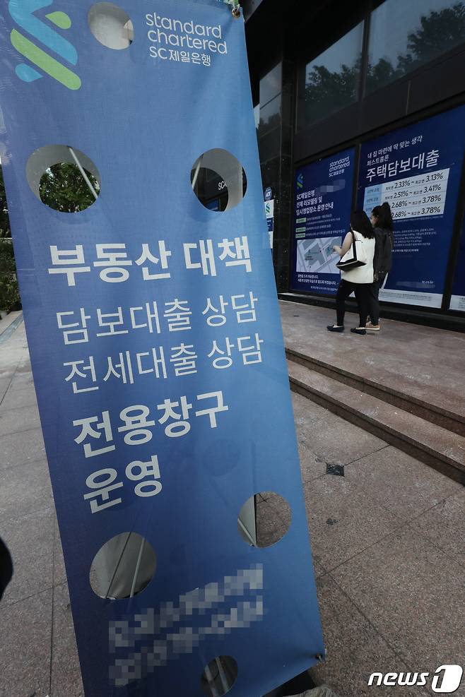 (서울=뉴스1) 박세연 기자 = 19일 서울 시내 한 은행 지점에 대출 안내문이 걸려있다.