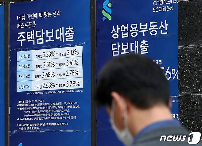 최근 주택담보대출을 받은 10명 가운데 4명 이상이 신용대출을 같이 받은 ‘이중채무자’인 것으로 나타났다. 이날 한국은행이 국회 정무위원회 소속 윤창현 국민의힘 의원에게 제출한 자료에 따르면 한은 가계부채 데이터베이스상 지난 1분기 신규 주택담보대출자 가운데 신용대출 '동시 차입' 상태인 대출자 비중은 41.6%로 집계됐다. 이는 2012년 2분기 통계 집계 이래 최대치다. 2021.10.19/뉴스1