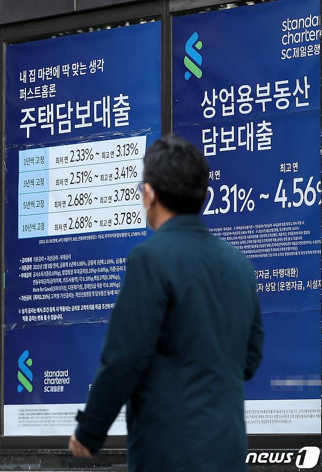 최근 주택담보대출을 받은 10명 가운데 4명 이상이 신용대출을 같이 받은 ‘이중채무자’인 것으로 나타났다. 이날 한국은행이 국회 정무위원회 소속 윤창현 국민의힘 의원에게 제출한 자료에 따르면 한은 가계부채 데이터베이스상 지난 1분기 신규 주택담보대출자 가운데 신용대출 '동시 차입' 상태인 대출자 비중은 41.6%로 집계됐다. 이는 2012년 2분기 통계 집계 이래 최대치다. 2021.10.19/뉴스1