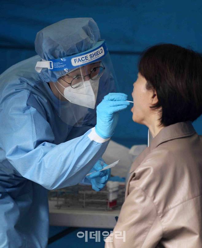 [이데일리 김태형 기자] 19일 서울 영등포구 중마루공원에 마련된 '찾아가는 임시선별진료소'에서 인근 상인 및 주민들이 검사를 받고 있다.