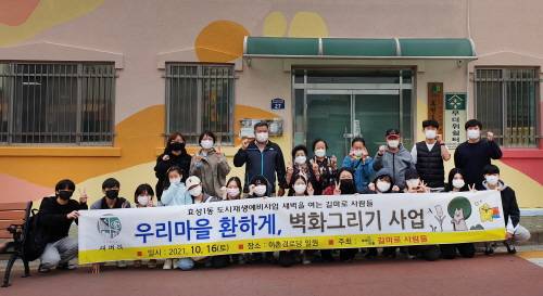 이번 벽화 그리기 사업은 지난달 11일부터 진행된 벽화 이론 수업의 실습 과정으로 이촌경로당 일원에서 방역수칙을 준수하며 수업 수강생과 주민, 학생 등 50여 명이 참여했다.