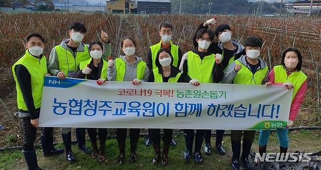 [청주=뉴시스] 김재광 기자 = 농협청주교육원(원장 태용문)은 19일 NH농협은행 신규직원들과 함께 자매 결연을 맺은 청주시 상당구 가덕면 농가를 찾아 일손 돕기 활동을 했다.2021.10.19.kipoi@newsis.com