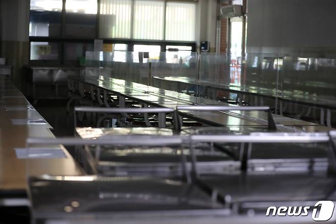 (서울=뉴스1) 황기선 기자 = 전국민주노동조합총연맹 총파업을 하루 앞둔 19일 서울 시내 한 초등학교 급식실에 적막감이 흐르고 있다.