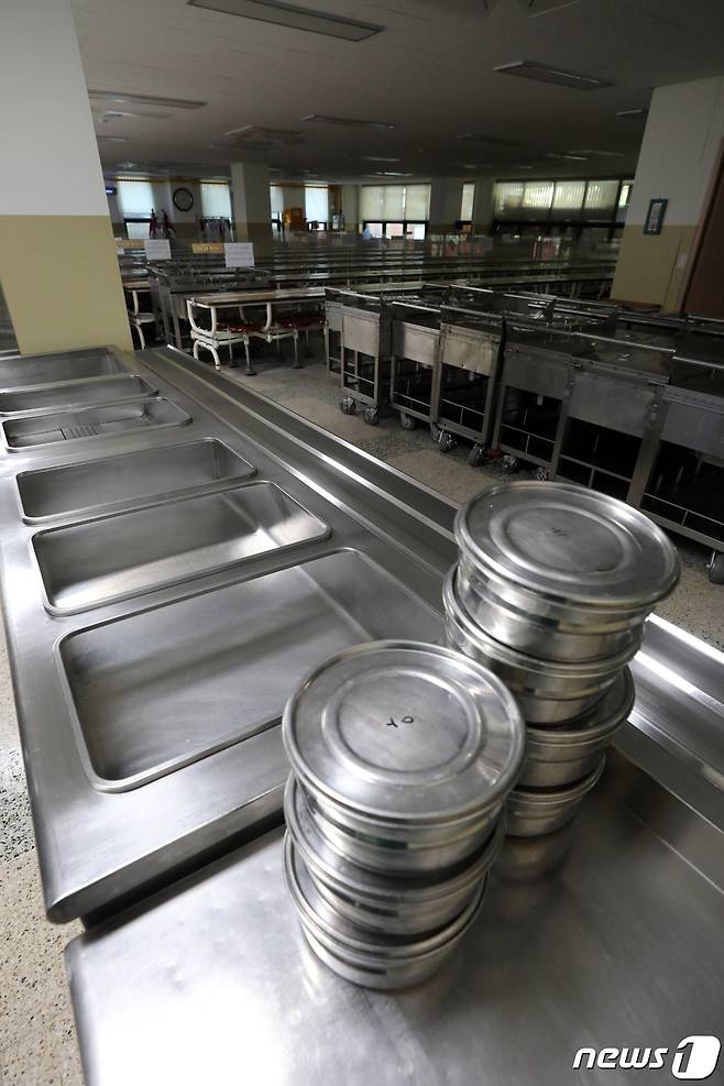 (서울=뉴스1) 황기선 기자 = 전국민주노동조합총연맹 총파업을 하루 앞둔 19일 서울 시내 한 초등학교 급식실에 적막감이 흐르고 있다.