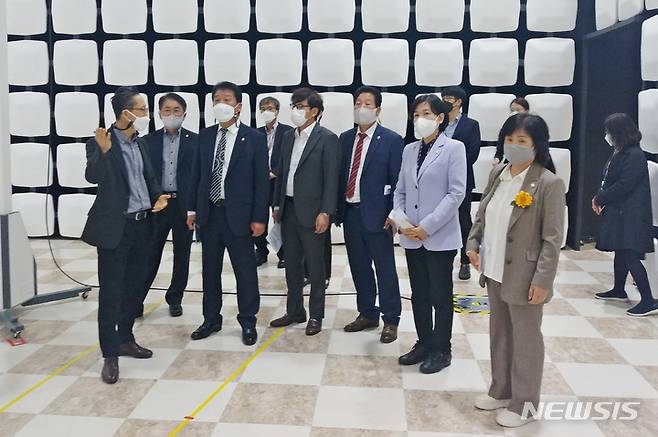 [청주=뉴시스] 임선우 기자 = 충북 청주시의회 경제환경위원회 소속 위원들이 19일 오송첨단의료산업진흥재단과 오송화장품뷰티산업엑스포 개막식 현장을 둘러보고 있다. 2021.10.19. imgiza@newsis.com