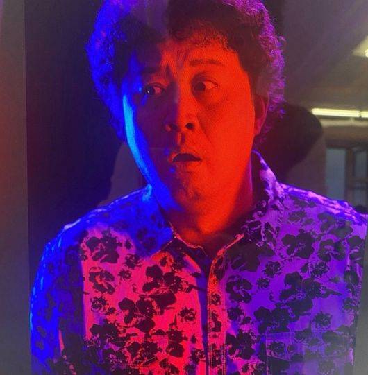 공개된 사진 속 정준하는 화려한 패턴의 블라우스를 입고 특유의 뽀글머리를 하고 있는 모습이다.