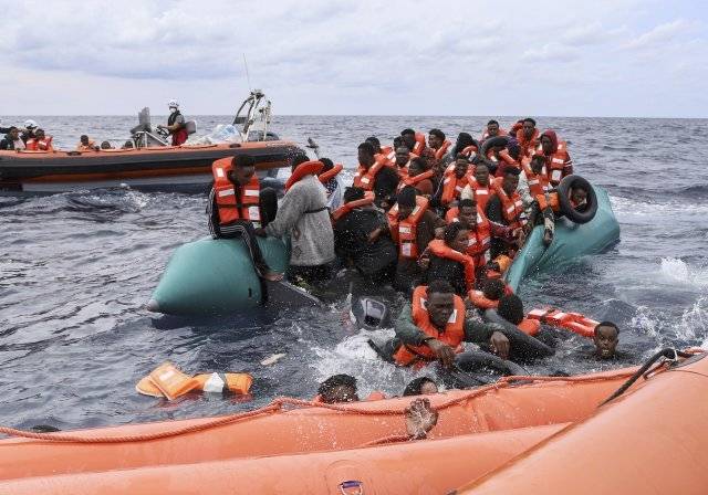 18일(현지시간) 리비아에서 약 35마일 떨어진 바다 위.