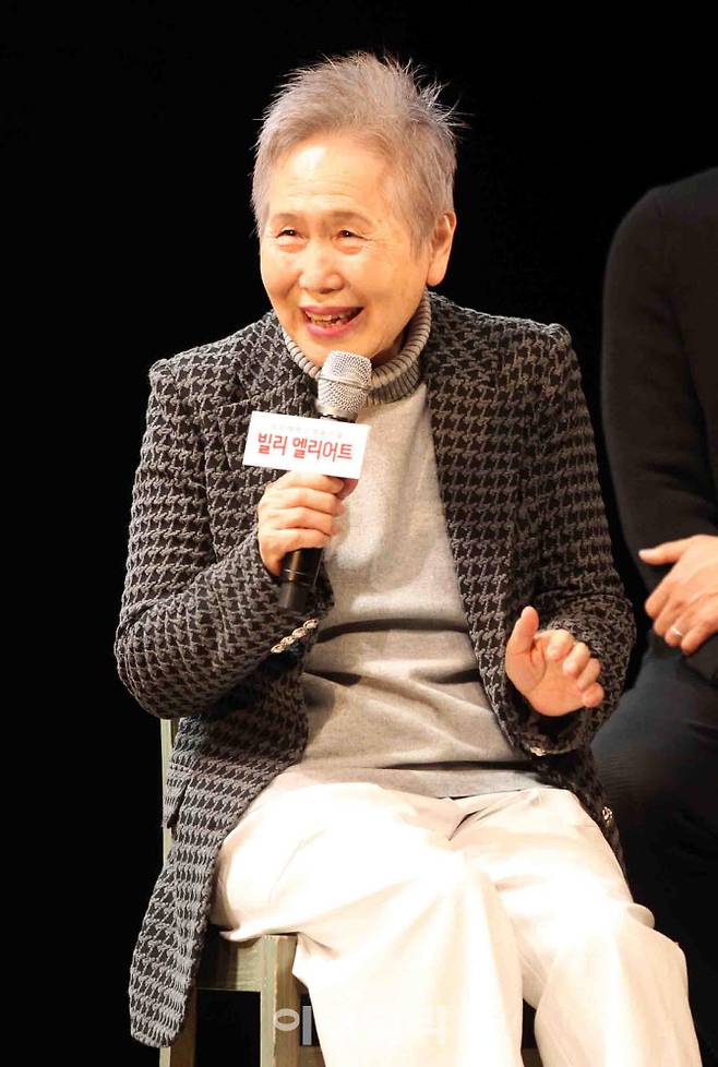 배우 박정자가 19일 서울 구로구 디큐브아트센터에서 열린 뮤지컬 '빌리 엘리어트' 프레스콜에서 기자들의 질의에 답하고 있다.