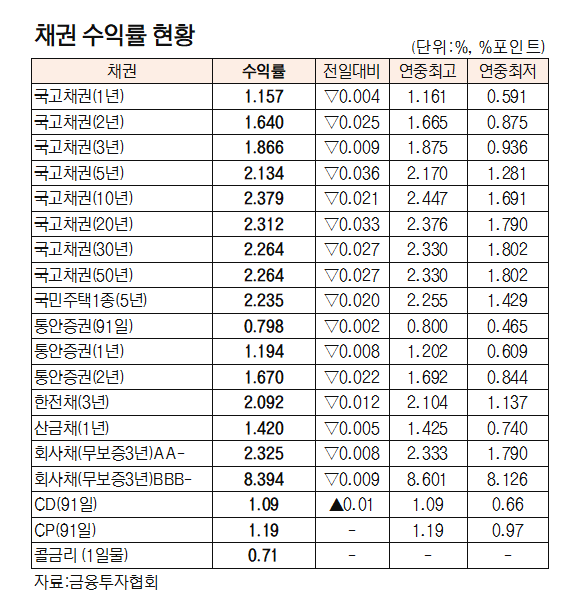 [표]채권 수익률 현황(10월 19일)