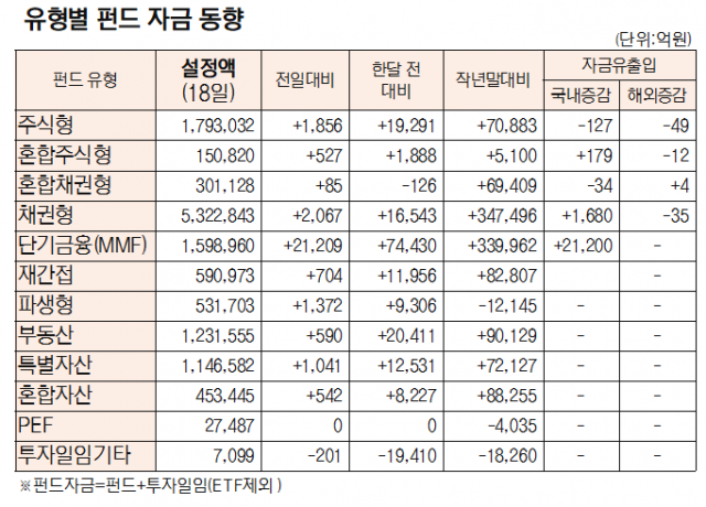 [표]유형별 펀드 자금 동향(10월 18일)