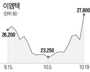 이엠텍은 19일 코스닥시장에서 10.76%(2700원) 오른 2만7800원에 장을 마쳤다. 이달 들어 이엠텍은 18.30% 상승했다.