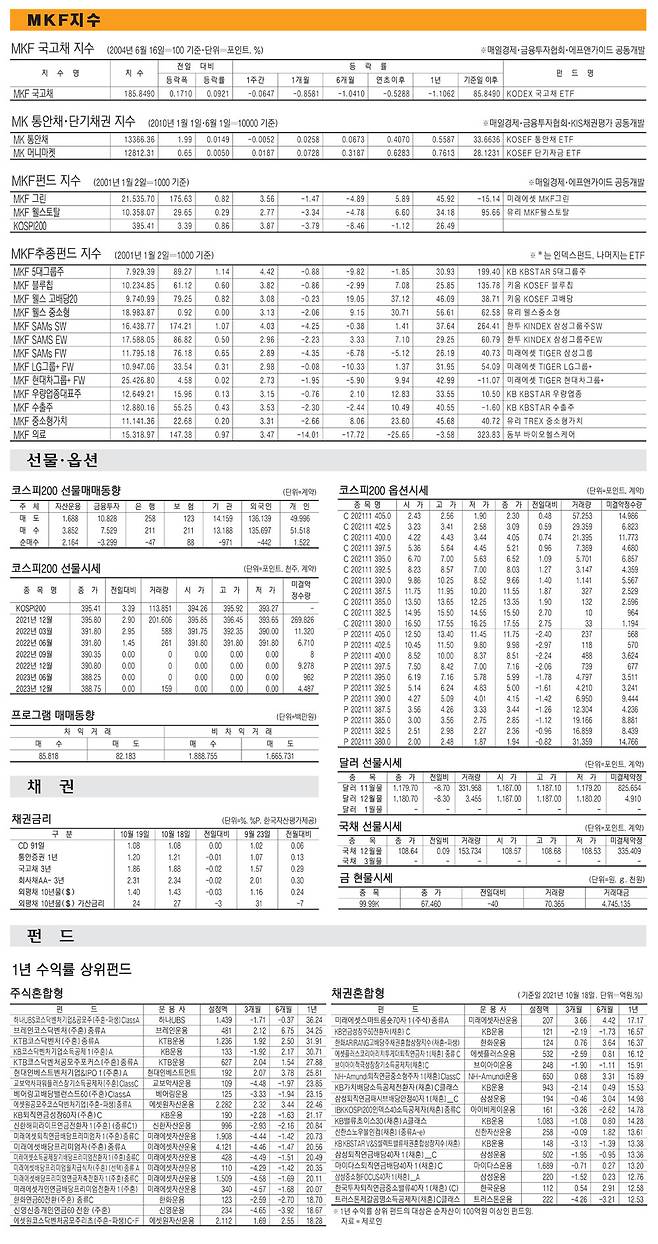 [표] 주요 증시 지표 (10월 19일)