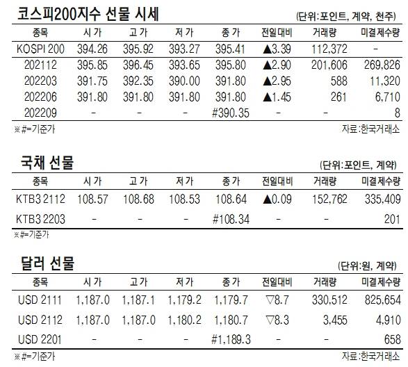 [표]코스피200지수 국채·달러 선물 시세(10월 19일)