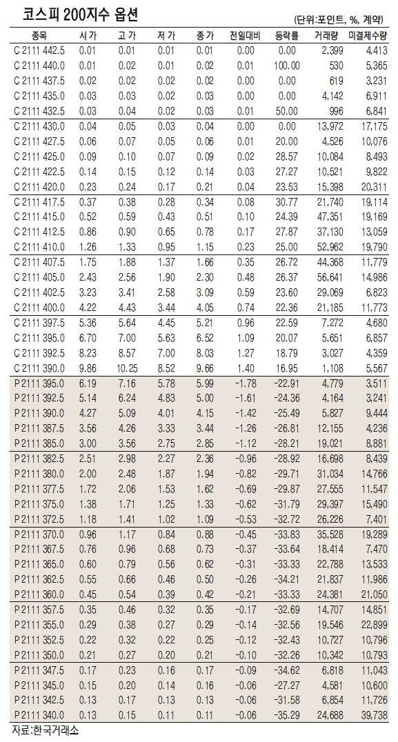- [표]코스피200지수 옵션 시세(10월 15일)