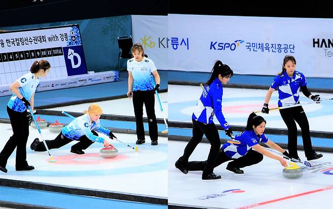 | ▲ 춘천시청(왼쪽)과 경기도청(오른쪽) 선수들. '팀 킴'과 함께 그랜드슬램에 출전해 좋은 성과를 노린다. |