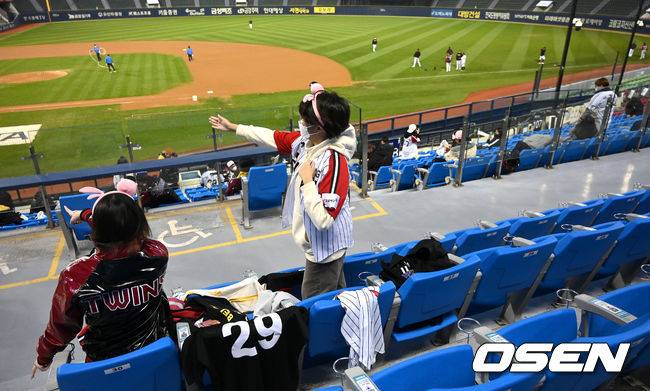 관중 입장이 재개된 서울 잠실야구장에서 팬들이 경기 시작을 앞두고 응원하고 있다. / dreamer@osen.co.kr