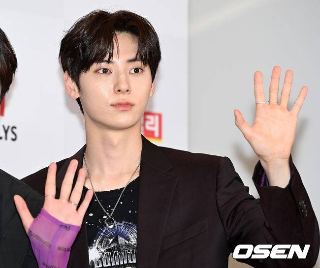 뉴이스트 민현이 레드카펫을 밟으며 포즈를 취하고 있다. 2021.10.19 /cej@osen.co.kr