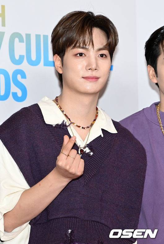 뉴이스트 JR이 레드카펫을 밟으며 포즈를 취하고 있다. 2021.10.19 /cej@osen.co.kr
