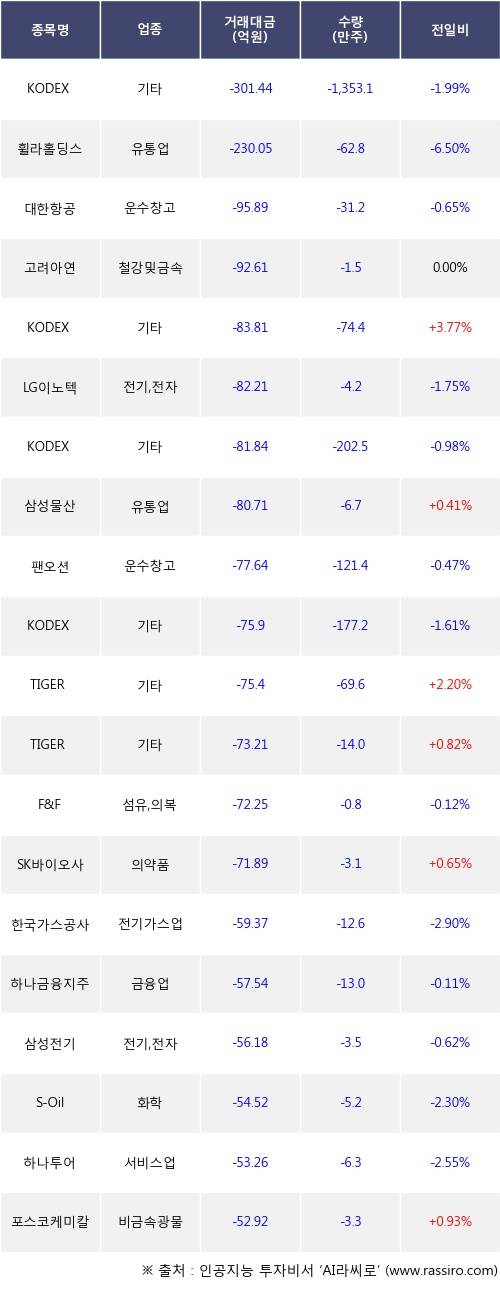19일, 거래소 기관 순매도상위에 유통업 업종 2종목