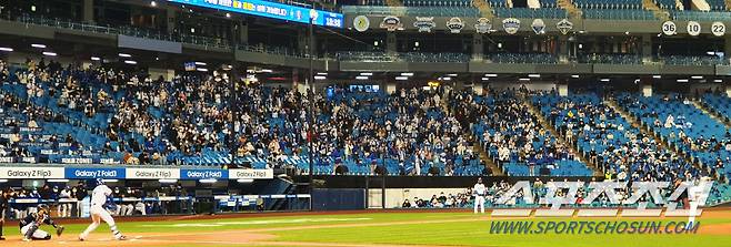 19일 대구 삼성라이온즈파크에서 KBO리그 삼성과 두산의 경기가 열렸다. 경기장을 찾은 삼성 팬들이 열띤 응원을 펼치고 있다. 대구=송정헌 기자 songs@sportschosun.com/2021.10.19/